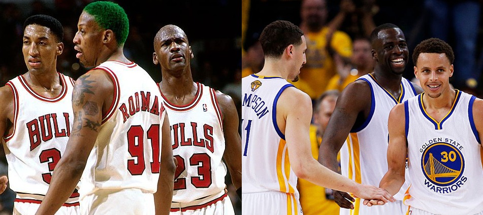 3 - Golden State Warriors 2014-1015 - Stagione semplicemente fantastica, con la definitiva affermazione degli Splash Brothers e il quarto titolo NBA della storia della franchigia. I trascinatori di questa impressionante cavalcata da 67-15, che li ha poi portati a battere in finale i Cavaliers del Prescelto, sono ovviamente stati Stephen Curry e Klay Thompson, affermatosi come giocatori devastanti.